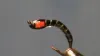 Peacock Despair Hook: Eagle Claw 1197B #2-12 Thread: Benecchi 12/0, black Tag/rib: Nylon yarn, scarlet (the original pattern calls for scarlet floss)